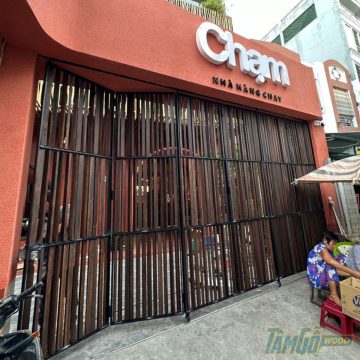 Cổng Sắt Lam Xoay Bằng Gỗ Muồng Mở Trượt Gấp